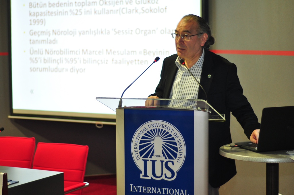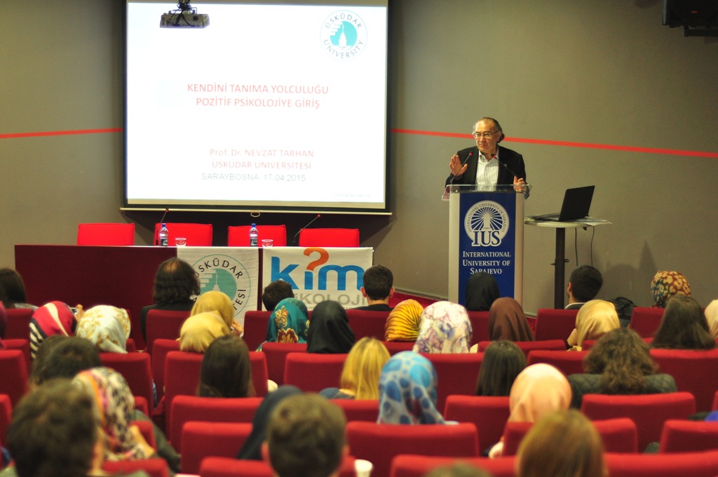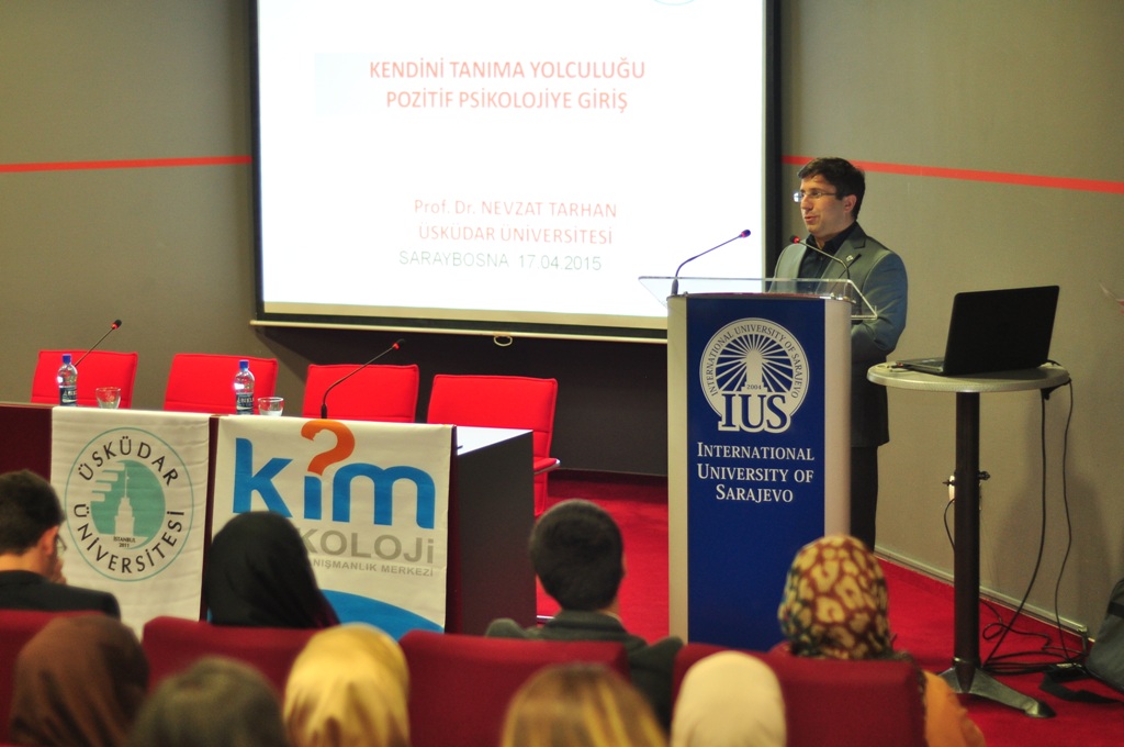 U petak, 17. aprila 2015. godine na Internacionalnom univerzitetu u Sarajevu (IUS) održano je predavanje o temi ‘’Pozitivna psihologija i psihologija sreće’’ predavača prof. dr. Nevzata Tarhana. Predavanje je organizovao Studentski parlament Internacionalnog univerziteta u Sarajevu (SPIUS), Bilgehan Çekin i predsjednik Udruženja psihologa, vanredni prof. dr. Ömer Akgül. Rektor Üsküdar univerziteta, prof. dr. Nevzat Tarhan govorio je o psihologiji ličnosti, te svakodnevnim životnim situacijama koje nas mogu ometati u sreći. Na kraju predavanja, rektor IUS-a, prof. dr. Yücel Oğurlu uručio je gostu prigodan poklon u znak sjećanja na posjetu IUS-u.