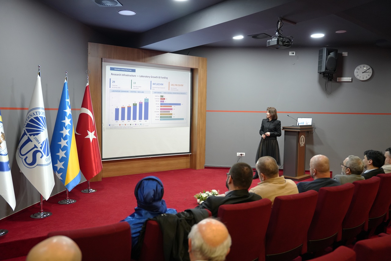 The program continued with presentations by the Vice-Rectors, each offering an overview of important priorities within their respective areas of responsibility. Associate Prof. Dr. Tarik Namas, Vice-Rector for Academic Activities and Students’ Affairs, spoke about the broad scope of academic coordination and student-related processes, while also pointing to several areas identified for further improvement in the period ahead. Associate Prof. Dr. Kanita Karađuzović-Hadžiabdić, Vice-Rector for International Cooperation and Research, presented a review of key developments and priorities over the past five years, with a focus on research, internationalization, accreditation, digitalization, and future planning. Associate Prof. Muhammed Yasir Göz, MA, Vice-Rector for General Affairs, emphasized the importance of efficiency, clear coordination, practical problem-solving, and continued development in areas related to partnerships, infrastructure, student experience, and community building.